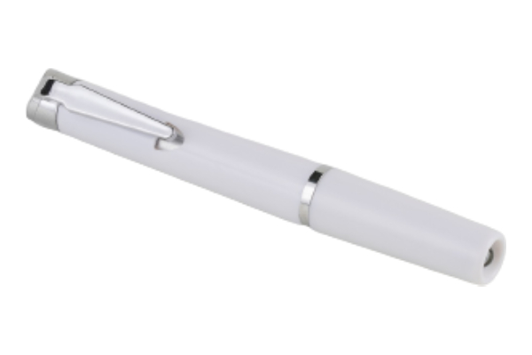 Seu design leve e compacto facilita o transporte no bolso do jaleco ou na bolsa profissional, sendo ideal para uso em consultórios, hospitais, ambulatórios e ambientes acadêmicos. O acabamento na cor branca confere aspecto limpo e profissional, aliado à resistência e praticidade para o uso diário.